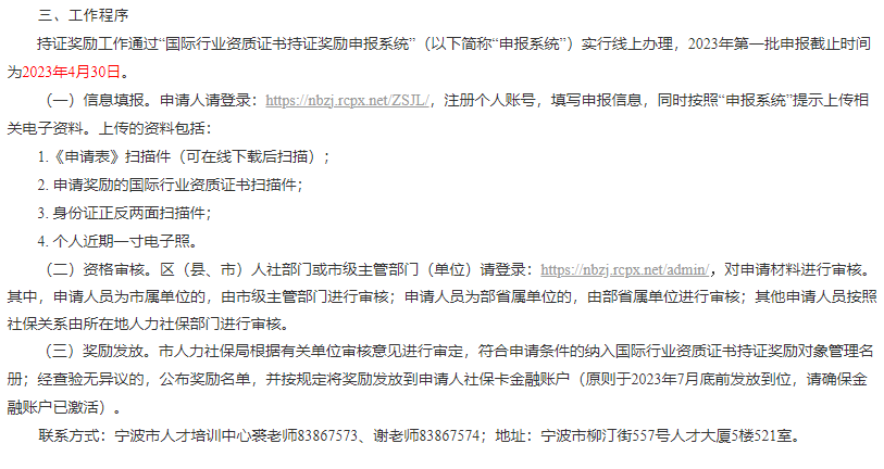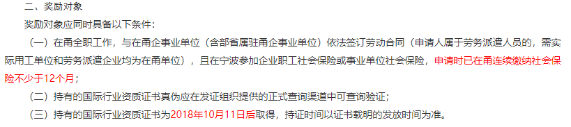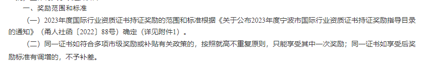 為加快建設(shè)世界重要人才中心和創(chuàng)新高地戰(zhàn)略支點(diǎn)城市,寧波市人力資源和社會保障局近日發(fā)布通知,啟動“2023年國際行業(yè)資質(zhì)證書持證獎勵(第一批)工作”。符合獎勵對象條件的acca持證人,經(jīng)申報(bào)審核將獲得一次性2萬元獎勵!具體通知內(nèi)容如下: