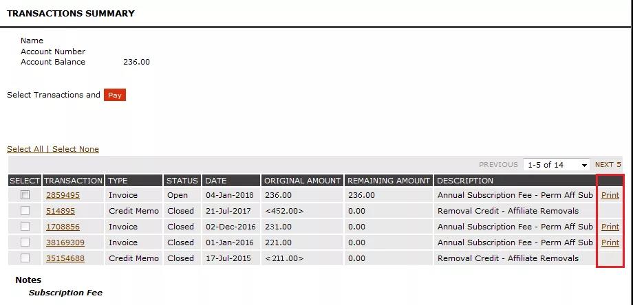 第八步:如需打印繳交年費(fèi)的電子收據(jù)(receipt),請在以下界面找到所需的支付記錄后點(diǎn)擊Print