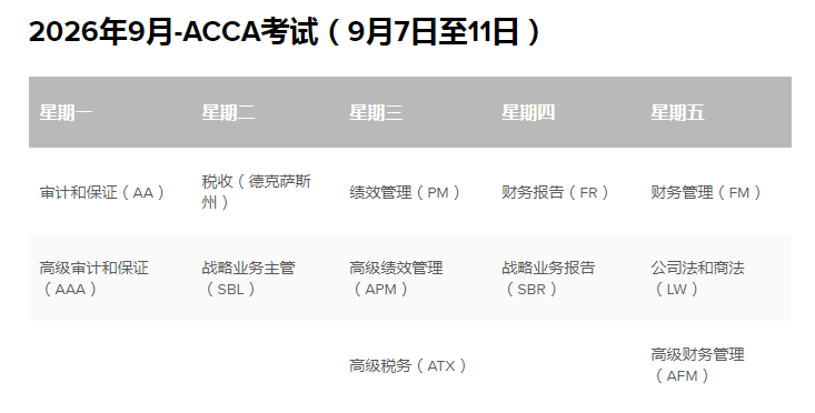 2026年6月份及9月份的acca考試時間已經(jīng)公布,請還不清楚的考生們前來關(guān)注!如果還想獲取報名時間、報名流程、報名條件等其他考試信息,可以隨時到東奧會計在線acca頻道查看!還在等什么,現(xiàn)在就來看看具體內(nèi)容吧!