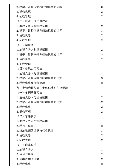 2016年注冊會計師考試大綱《稅法》