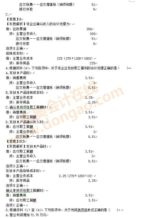 4.根據(jù)資料(4),下列各項(xiàng)中,關(guān)于該企業(yè)發(fā)放職工福利的會(huì)計(jì)處理正確的是(    )。