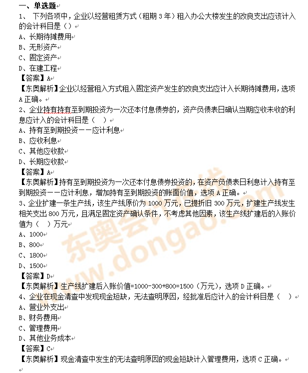 當(dāng)前位置:東奧會計(jì)在線>初級會計(jì)職稱>歷年真題>正文