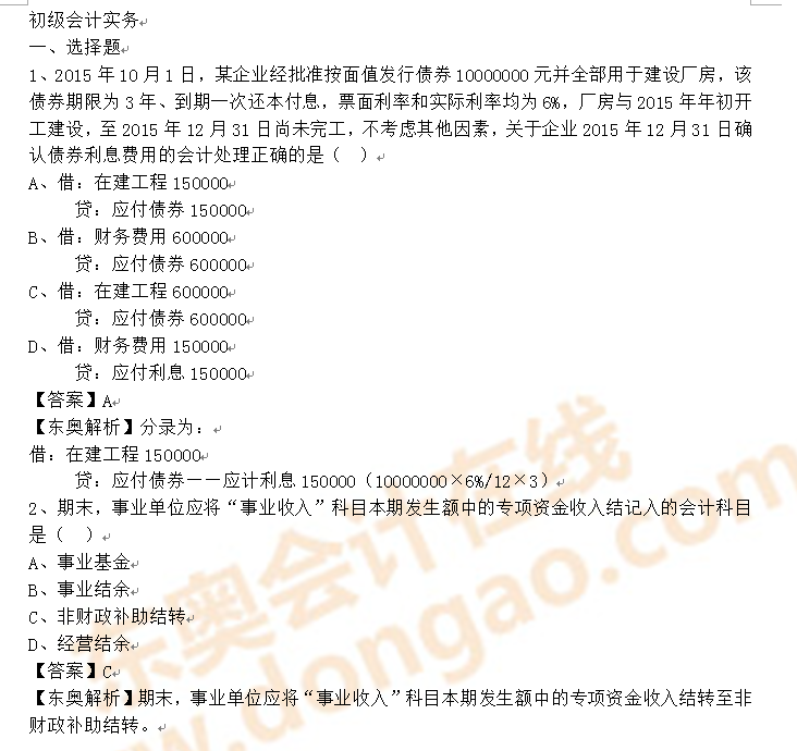當(dāng)前位置:東奧會(huì)計(jì)在線>初級(jí)會(huì)計(jì)職稱>歷年真題>正文