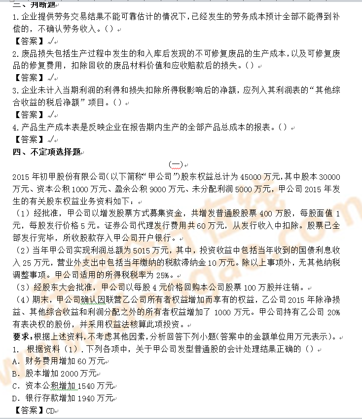 2016初級(jí)職稱考試《初級(jí)會(huì)計(jì)實(shí)務(wù)》真題及解析5月18日