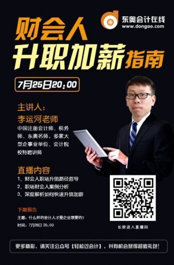 下周一晚,我們來聽李運河老師講會計人的升職加薪之路吧。