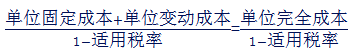 上述公式中,單位成本是指單位全部成本費用,可以用單位制造成本加上單位產(chǎn)品負(fù)擔(dān)的期間費用來確定。