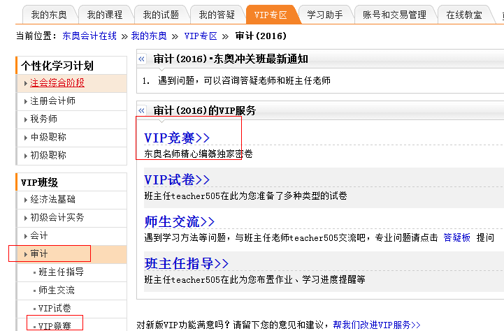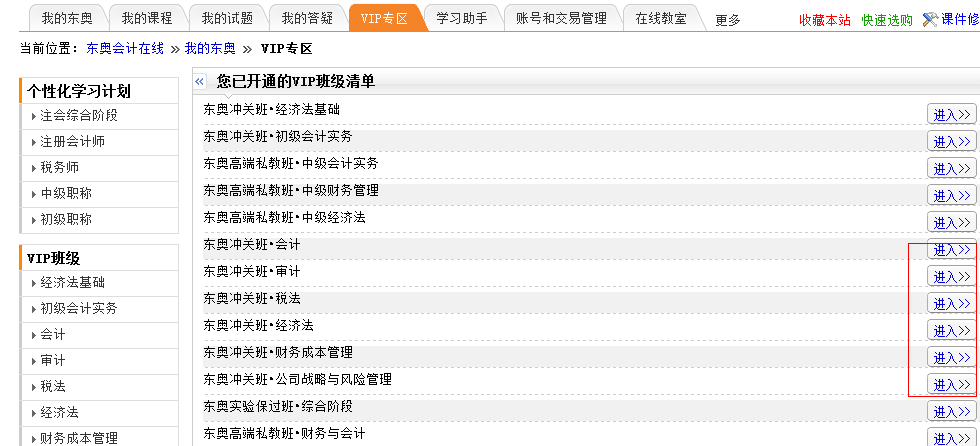 第二步:點(diǎn)擊“您已開(kāi)通的VIP班級(jí)清單”中對(duì)應(yīng)科目的“進(jìn)入”鍵