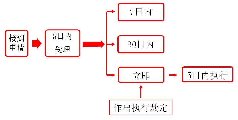 ?、偃嗣穹ㄔ航拥叫姓C(jī)關(guān)強(qiáng)制執(zhí)行的申請,應(yīng)當(dāng)在5日內(nèi)受理。