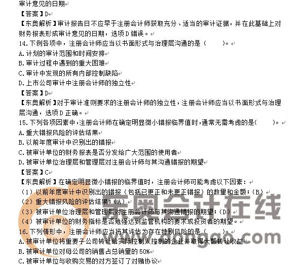 2016年注冊(cè)會(huì)計(jì)師考試真題及答案(審計(jì)回憶版)