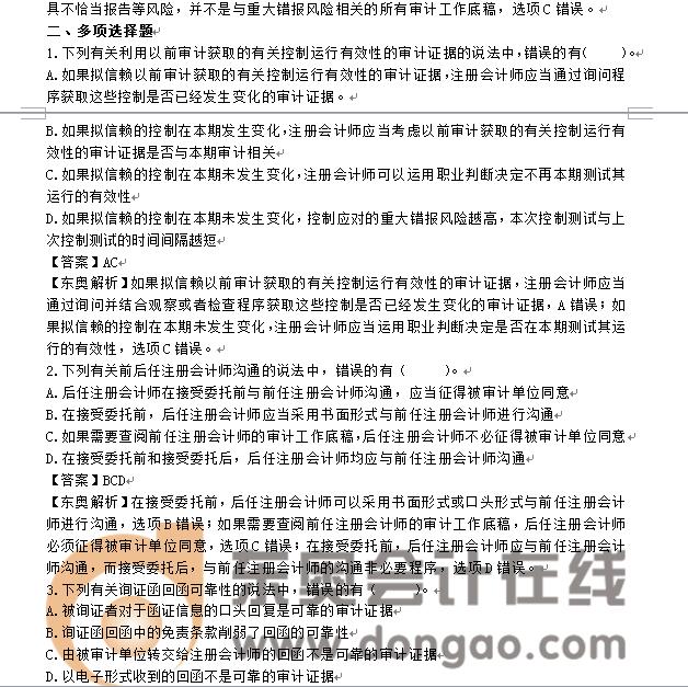 2016年注冊會計師考試真題及答案(審計回憶版)