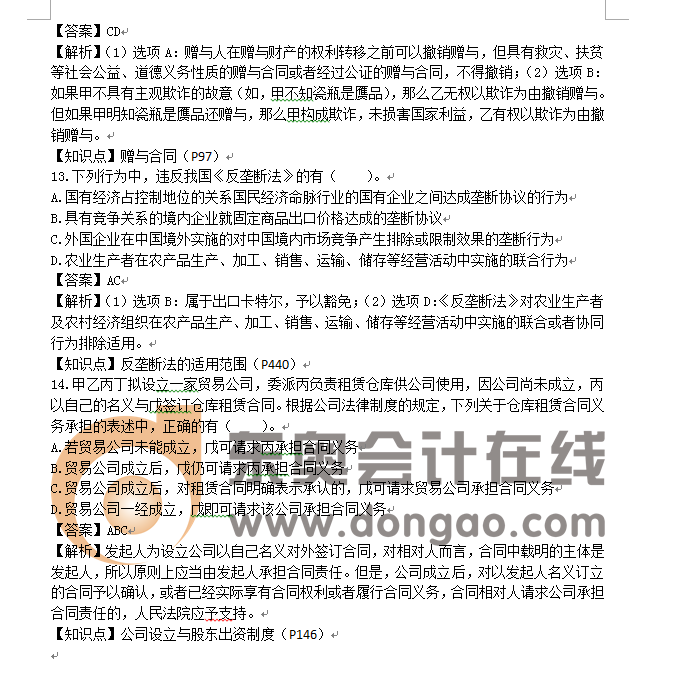 2016年注會《經(jīng)濟法》考試真題及參考答案(考生回憶版)
