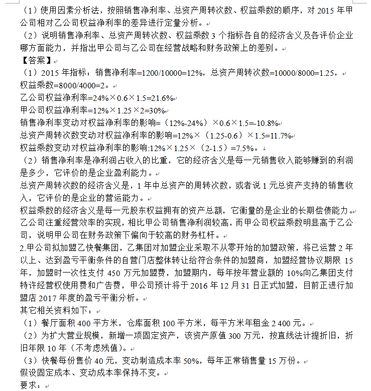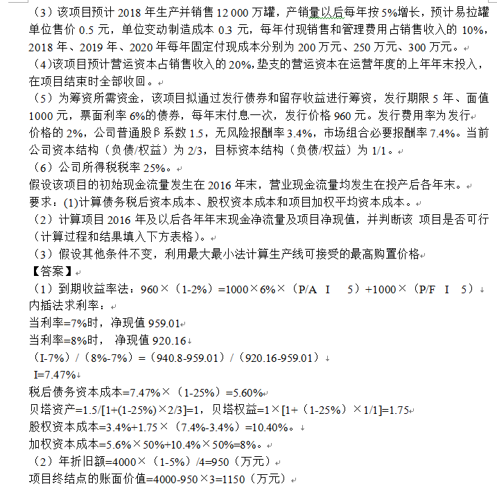2016年注冊會計師《財管》考試真題及參考答案(考生回憶版)