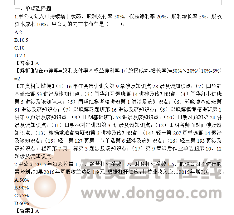 2016年注冊會計師考試《財管》考試已順利結(jié)束,東奧對2016年注會專業(yè)階段考試《財管》真題及答案進行了整理,以下是2016年CPA《財管》真題及答案解析,希望對考生有所幫助。