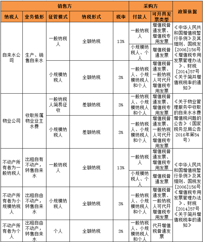 【東奧小編】根據(jù)現(xiàn)有我國增值稅相關(guān)法規(guī),自來水在生產(chǎn)、銷售(包括轉(zhuǎn)售)等環(huán)節(jié),納稅事項(xiàng)有其特殊性,小編總結(jié)如下,供您參考。