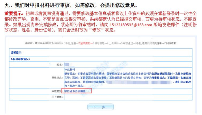 天津市高級(jí)會(huì)計(jì)師網(wǎng)上申報(bào)材料流程為:登錄高級(jí)會(huì)計(jì)師評(píng)審系統(tǒng),查看注意事項(xiàng)。左側(cè)有申報(bào)通知、評(píng)審政策和申報(bào)流程。不論以前年度是否申報(bào)多,今年首次登錄都必須先注冊(cè)。填報(bào)基本信息,密碼設(shè)置6位以上,可以是數(shù)字也可以是字母和數(shù)字組合。填寫基本信息,注意紅框內(nèi)的提示內(nèi)容,填寫后點(diǎn)擊下一步。核對(duì)填寫的信息,如不需修改點(diǎn)擊下一步。按照要求上傳申報(bào)材料,每成功上傳資料后,在該項(xiàng)目的左側(cè)會(huì)打“√”標(biāo)記。全部上傳后,點(diǎn)擊檢查工作,系統(tǒng)自動(dòng)檢查申報(bào)材料的完整性。上報(bào)材料全部完成后,點(diǎn)擊提交材料。我們對(duì)申報(bào)材料進(jìn)行審核,如需修改,會(huì)提出修改意見(jiàn)。審核通過(guò)后,申報(bào)人員登錄后可以進(jìn)行網(wǎng)上繳費(fèi)。繳費(fèi)后即可打印出受理通知,然后按照受理單的要求報(bào)送紙質(zhì)申報(bào)材料。