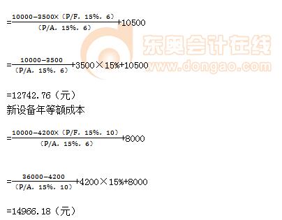 上述計算表明,繼續(xù)使用舊設備的年金成本為12742.76元,低于購買新設備的年金成本14966.18元,每年可以節(jié)約2223.42元(14966.18-12742.76),應當繼續(xù)使用舊設備。