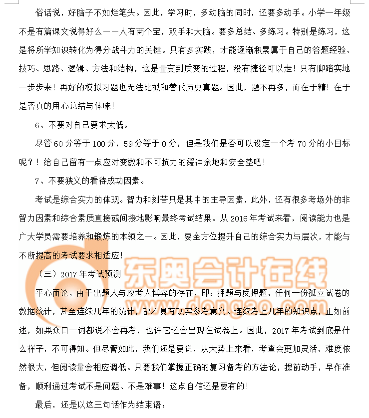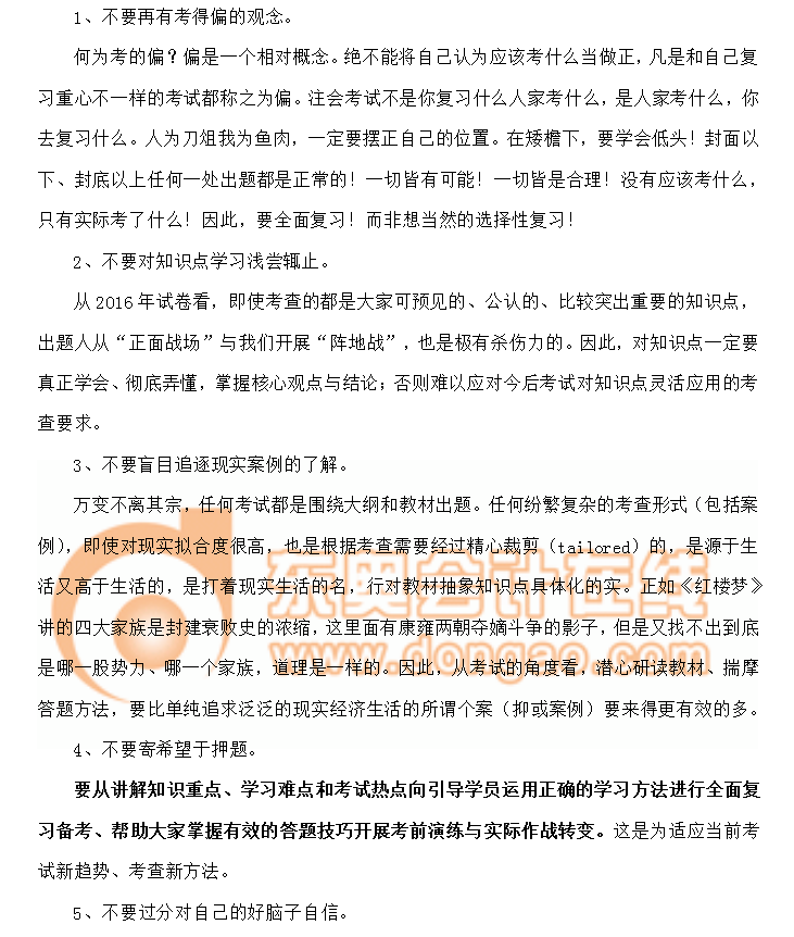 以銅為鏡,可以正衣冠;以史為鏡,可以知興替。以歷史試卷為參照,可以捕捉趨勢。因此,在開始新的注會備考征程之前,很有必要對歷史考題,特別是2016年的試卷進行深入、透徹的解析。這么做的目的并不是希望藉此去預測明年會考什么、不考什么;而是要據(jù)此去把握考試的大勢,這比一城一地的得失、某個具體知識點的押題來得更為重要!這是方向性的大問題!