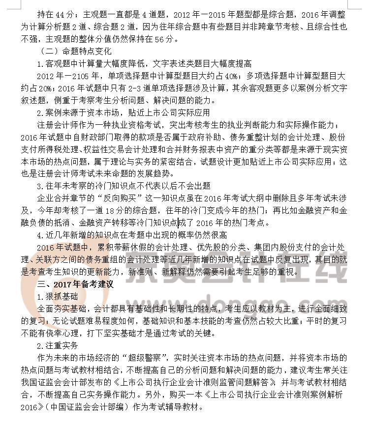 2016注冊會計師考試《會計》考情分析