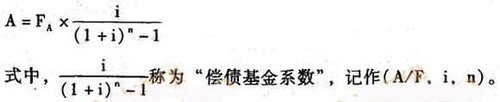 年償債基金是指為了在約定的未來(lái)某一時(shí)點(diǎn)清償某筆債務(wù)或積聚一定數(shù)額的資金而必須分次等額形成的存款準(zhǔn)備金。也就是為使年金終值達(dá)到既定金額的年金數(shù)額(即已知終值FA,求年金A )。在普通年金終值公式中解出A,這個(gè)A 就是年償債基金。