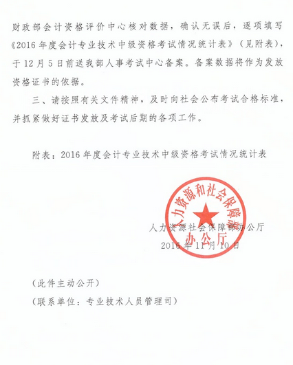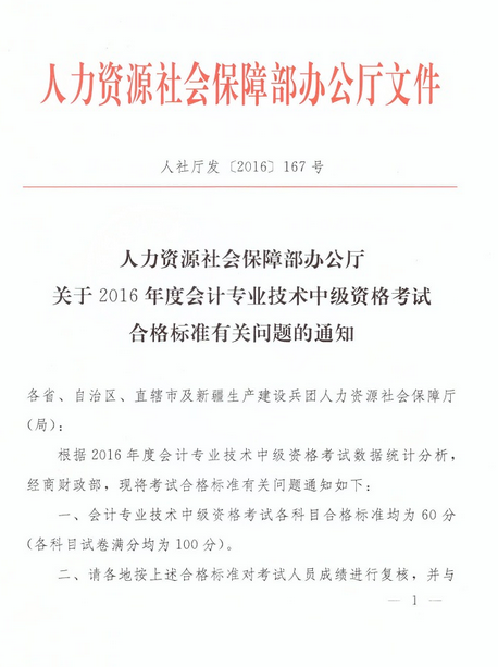 關(guān)于2016年度會計專業(yè)技術(shù)中級資格考試合格標(biāo)準(zhǔn)有關(guān)問題的通知