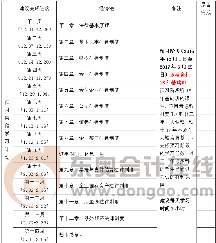 領先別人一步,取證從現(xiàn)在開始!下面東奧為大家制定了注冊會計師考試《經(jīng)濟法》學習計劃,希望大家根據(jù)自己的情況,有計劃的去復習,逐步實現(xiàn)自己的目標。