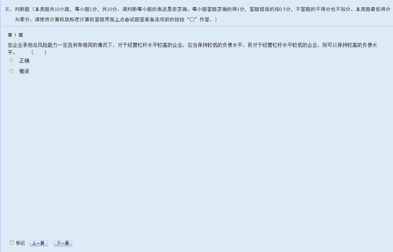 判斷題答題時(shí),考生直接用鼠標(biāo)點(diǎn)擊備選項(xiàng)中認(rèn)為正確的選項(xiàng)前的按鈕即可。如需修改答案,用鼠標(biāo)點(diǎn)擊其他備選項(xiàng)前的按鈕,原選擇的選項(xiàng)將被自動(dòng)替換。如需撤銷已經(jīng)選中的選項(xiàng),再次點(diǎn)擊該選項(xiàng)前的按鈕即可。