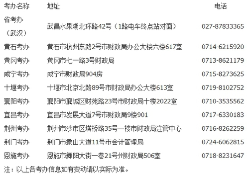 2、地點(diǎn)和聯(lián)系方式:武漢考區(qū)考生請至省考辦申辦,其他考生請到最后科目通過的考區(qū)考辦申辦。各考辦具體地址及聯(lián)系方式如下: