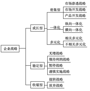 為了實(shí)現(xiàn)企業(yè)戰(zhàn)略的目標(biāo),企業(yè)戰(zhàn)略通??梢詣澐譃槿N類型:成長型戰(zhàn)略、穩(wěn)定型戰(zhàn)略和收縮型戰(zhàn)略。