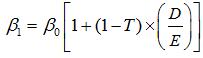 11為負債經(jīng)營的9系數(shù);13為無負債經(jīng)營的9系數(shù);T為企業(yè)所得稅稅率;D為企業(yè)負債的市場價值;E為企業(yè)權(quán)益的市場價值。