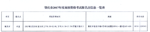附件二:肇慶市2017年度高級資格考試報名點信息一覽表
