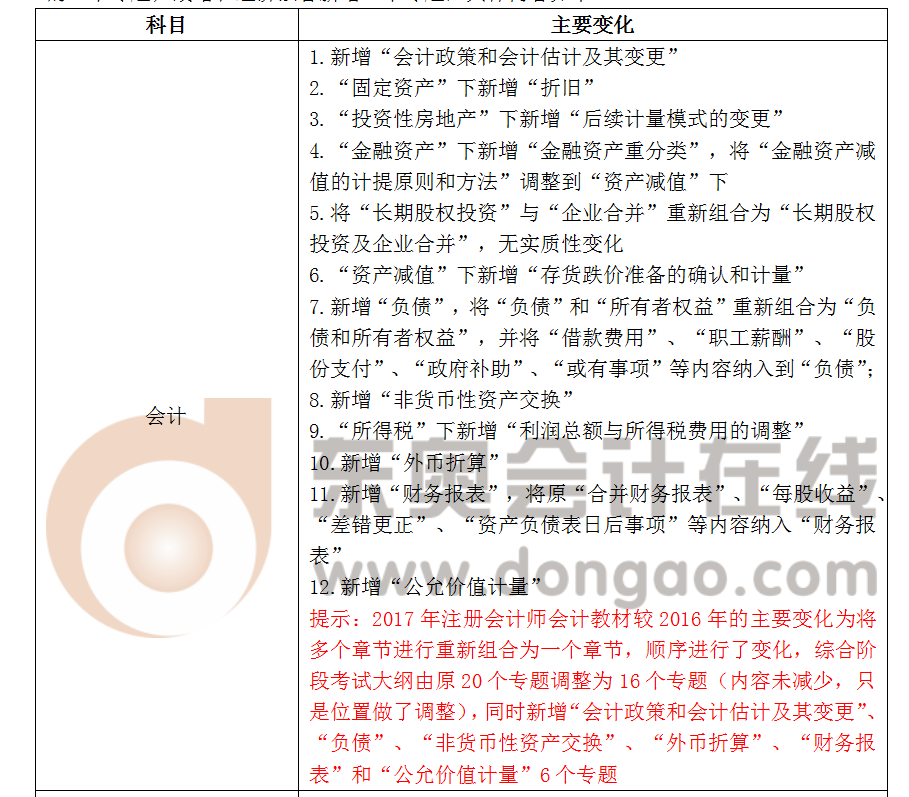 2017年注冊(cè)會(huì)計(jì)師綜合階段考試大綱變化