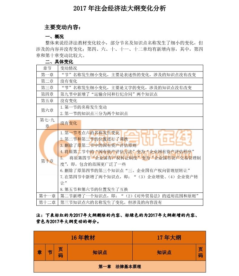 2017年注冊(cè)會(huì)計(jì)師考試《經(jīng)濟(jì)法》考試大綱變化分析