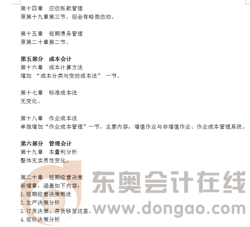 2017年注會《財務成本管理》考試大綱變化分析