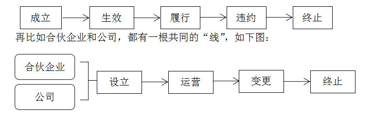 經(jīng)濟(jì)法的考點(diǎn)很多,知識(shí)點(diǎn)非常瑣碎,我們要把這些零散的知識(shí)點(diǎn)用一條主線串連到一起。在復(fù)習(xí)過(guò)程中,有意識(shí)地找到這些“線”,記憶將更有條理、更有序。比如合同法有一根明顯的“線”,如下圖: