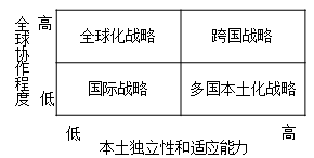 【答案解析】國際戰(zhàn)略的全球協(xié)作程度和本土獨立性以及適應(yīng)能力均低。