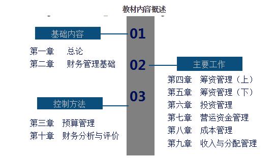 如何對(duì)第二部分的財(cái)務(wù)管理工作進(jìn)行控制,事前、事中、事后都需要控制,運(yùn)用什么方法進(jìn)行控制。其中,第三章屬于事前控制,第十章屬于事后控制。第十章中的財(cái)務(wù)決策屬于事中控制,企業(yè)的每一步都涉及到財(cái)務(wù)決策。