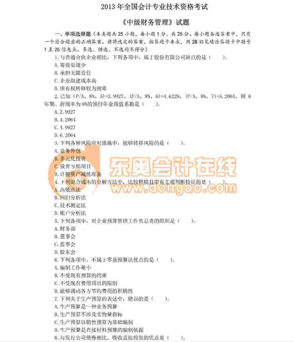真題詳情點擊下載:2013年中級財務(wù)管理真題