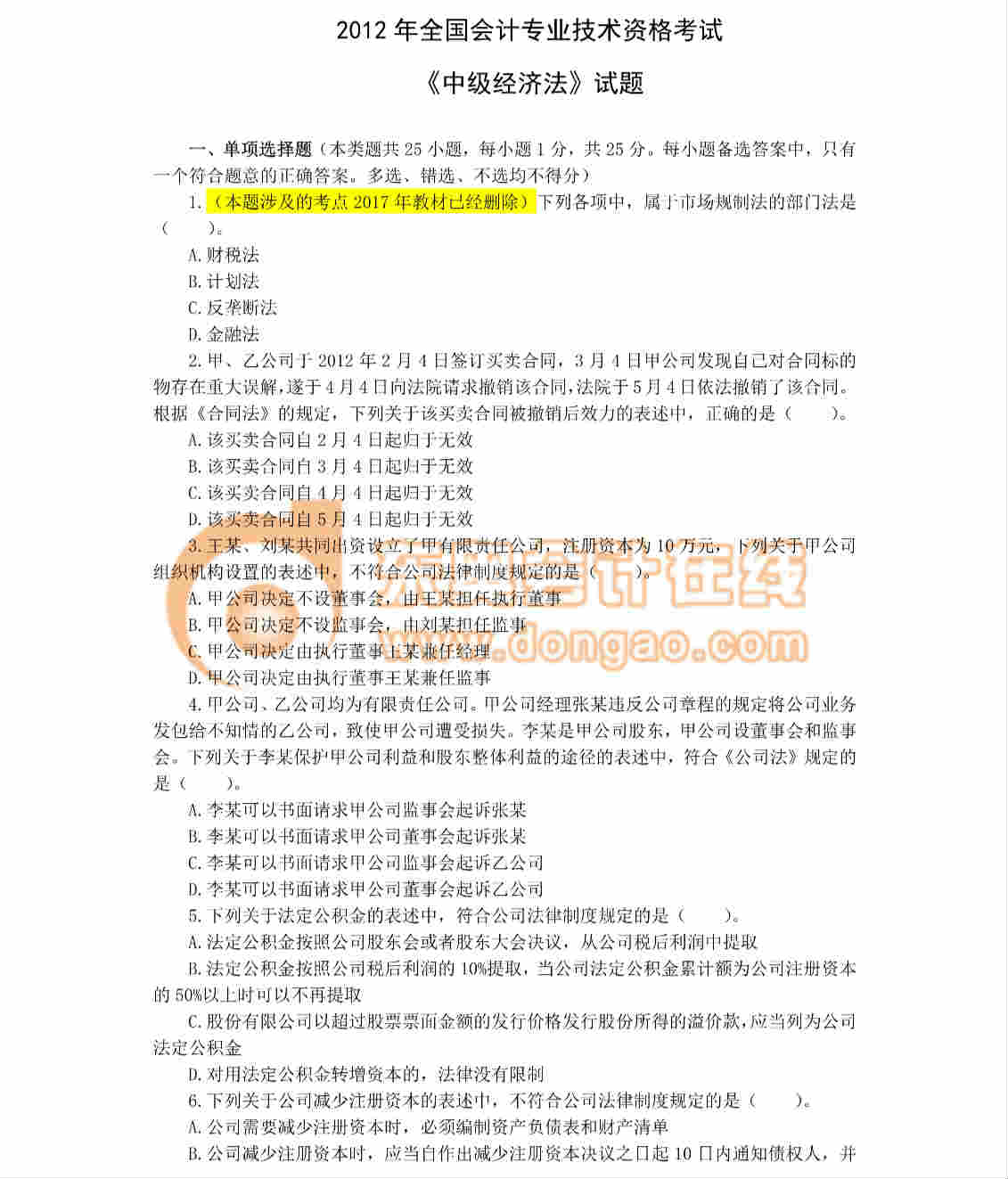 2012年中級(jí)經(jīng)濟(jì)法真題(根據(jù)2017教材修改版)
