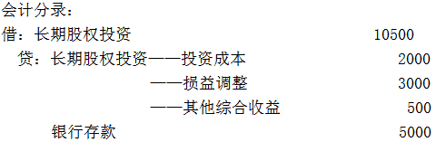 【答案解析】個別財務報表中長期股權投資初始投資成本=原來部分投資在追加投資日的賬面價值+新增投資成本=5500+5000=10500(萬元)。