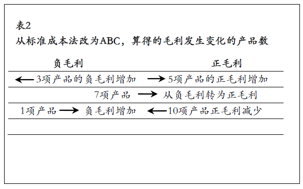 從標(biāo)準(zhǔn)成本法改為ABC,算得的毛利發(fā)生變化的產(chǎn)品數(shù)