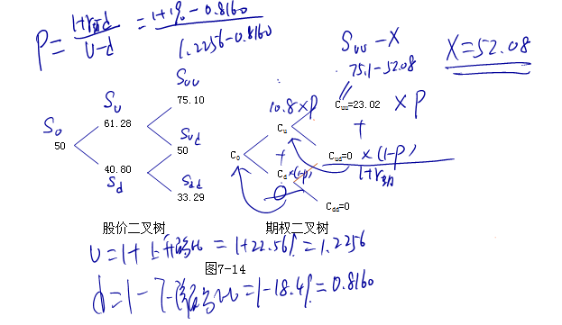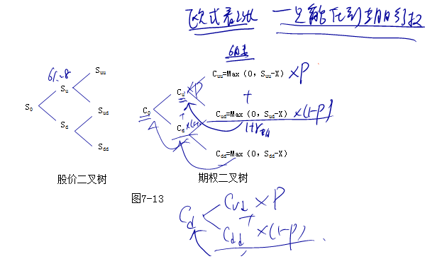 先利用單期定價模型,根據(jù)Cuu和Cud計算節(jié)點Cu的價值,利用Cud和Cdd計算Cd的價值;然后,再次利用單期定價模型,根據(jù)Cu和Cd計算C0的價值。從后向前推進。