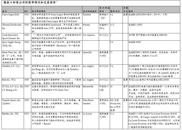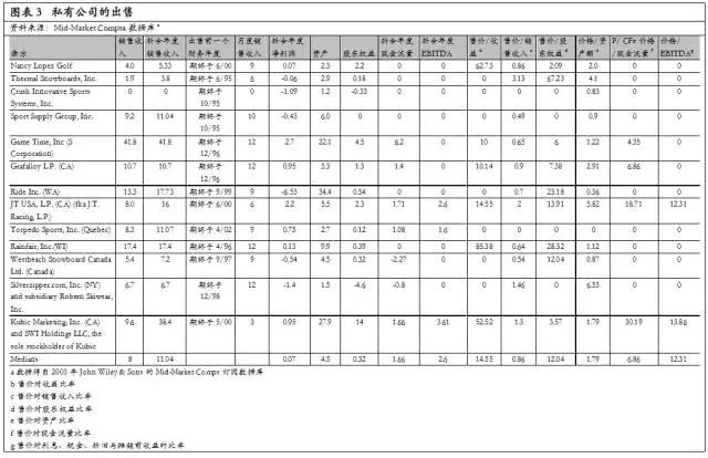 “售價(jià)/參變量”這一倍數(shù),是數(shù)據(jù)庫中可比企業(yè)的數(shù)值的平均數(shù);“參變量”是該企業(yè)的相應(yīng)數(shù)值,諸如收益、銷售收入、EBITDA、賬面價(jià)值。圖表3和圖表4列示了近期出售的運(yùn)動(dòng)器械公司的利潤(rùn)表和資產(chǎn)負(fù)債表的各項(xiàng)參變量、企業(yè)估價(jià)的倍數(shù),以及有關(guān)交易結(jié)構(gòu)的信息。Gary認(rèn)為,他可以利用這些信息,為Frosty鞋業(yè)公司作出企業(yè)評(píng)估和交易結(jié)構(gòu)分析。