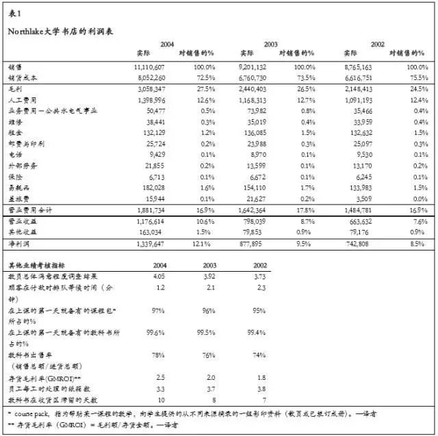 Wendy把這個銷售不佳的消息向她的上司Chuck Irwin(Northlake大學(xué)的財(cái)務(wù)副校長)作了匯報(bào)。在對她表示同情之后,Chuck說他對這一銷售問題并不感覺吃驚,并說她應(yīng)該考慮在她下一次的業(yè)績評估報(bào)告中,提出如何應(yīng)對這些新出現(xiàn)的技術(shù)問題。在那份報(bào)告中,她應(yīng)該采用基準(zhǔn)分析法,把Northlake書店的業(yè)績與同行的競爭對手作一對比。通過這樣的分析,會幫助Wendy找出該書店的優(yōu)勢和劣勢所在。此外,Chuck還要求Wendy制訂幾項(xiàng)短期的業(yè)績目標(biāo)和與之相關(guān)的考核指標(biāo),作為今后評估業(yè)績之用。他要求在下周的會議中討論這一問題,下周的會議要對這家書店的上一個(2004)會計(jì)年度(從2003年7月到2004年6月)的業(yè)績進(jìn)行總結(jié)。Chuck要求在年度總結(jié)中,所有在他領(lǐng)導(dǎo)下的大學(xué)各部門,都應(yīng)作一次基準(zhǔn)分析。