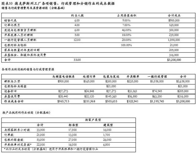 德克薩斯州工廠各項銷售、行政管理和分銷作業(yè)的成本數(shù)據(jù)