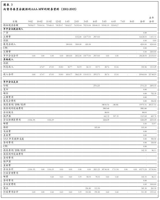 向督導委員會提供的AAA-MW的財務資料(2002-2003)