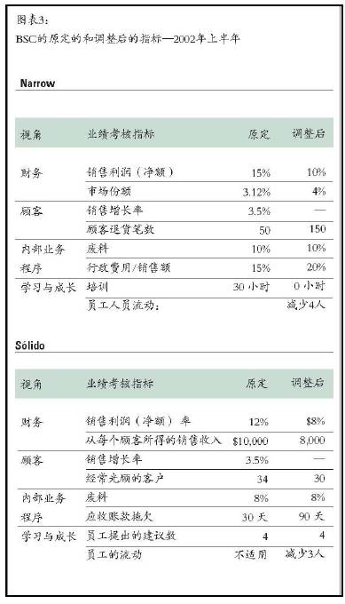 圖表3:BSC的原定的和調(diào)整后的指標(biāo)——2002年上半年
