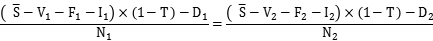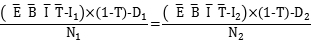 N1、N2—兩種籌資方式下普通股股數(shù);