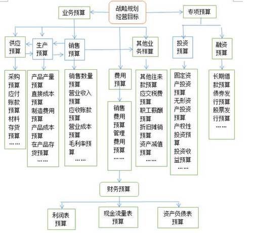 全面預(yù)算通常由業(yè)務(wù)預(yù)算(即經(jīng)營(yíng)預(yù)算)、專(zhuān)項(xiàng)預(yù)算(即投融資預(yù)算)和財(cái)務(wù)預(yù)算三部分組成。