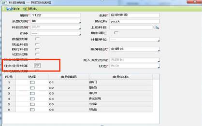 說明:除“應(yīng)收賬款”外,還有“預(yù)付賬款”、“應(yīng)付賬款”、“預(yù)收賬款”等科目也應(yīng)設(shè)置成往來業(yè)務(wù)核算,并且選中相應(yīng)的核算項目類別,如“應(yīng)付賬款”科目應(yīng)選中“供應(yīng)商”類別