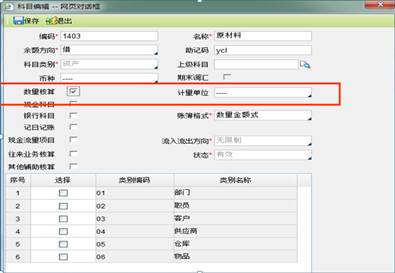 在科目管理中,還有一些特殊科目應(yīng)設(shè)置成數(shù)量核算,例如“原材料”科目應(yīng)設(shè)置成數(shù)量核算,并且選擇“計量單位”,在錄入憑證時會提示您錄入數(shù)量和單價,并且自動生成數(shù)量金額式賬簿和報表。